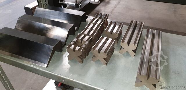 Betingelse: meget god (brugt), Funktionalitet: fuldt funktionsdygtig, Produktionsår: 2021, driftstimer: 7.484 h, maskine/køretøjsnummer: 2962, slaglængde: 300 mm, samlet vægt: 9.230 kg, pressekraft: 100 t, pressehastighed: 10 mm/s, maks. kørehastighed: 200 mm/min, arbejdslængde: 3.100 mm, Kantpresse Rico PRCN 30100